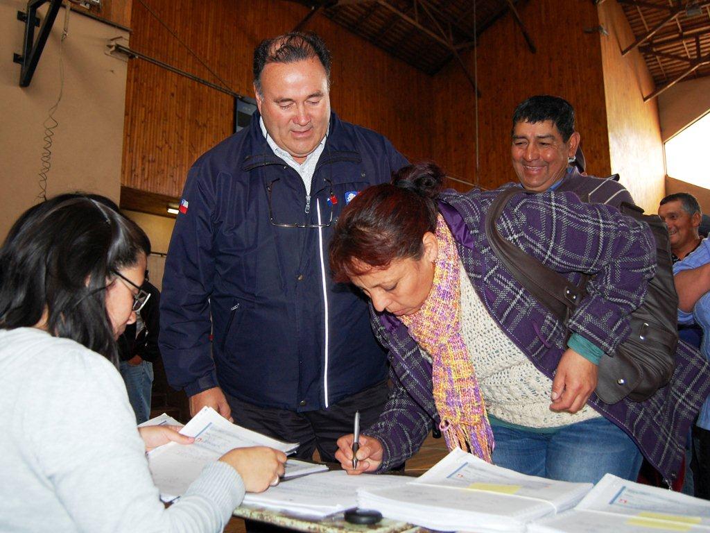 Los recursos fueron entregados en el gimnasio municipal por el director regional de INDAP, Ricardo Mége y el edil de la comuna de Padre las Casas, Juan Eduardo Delgado.