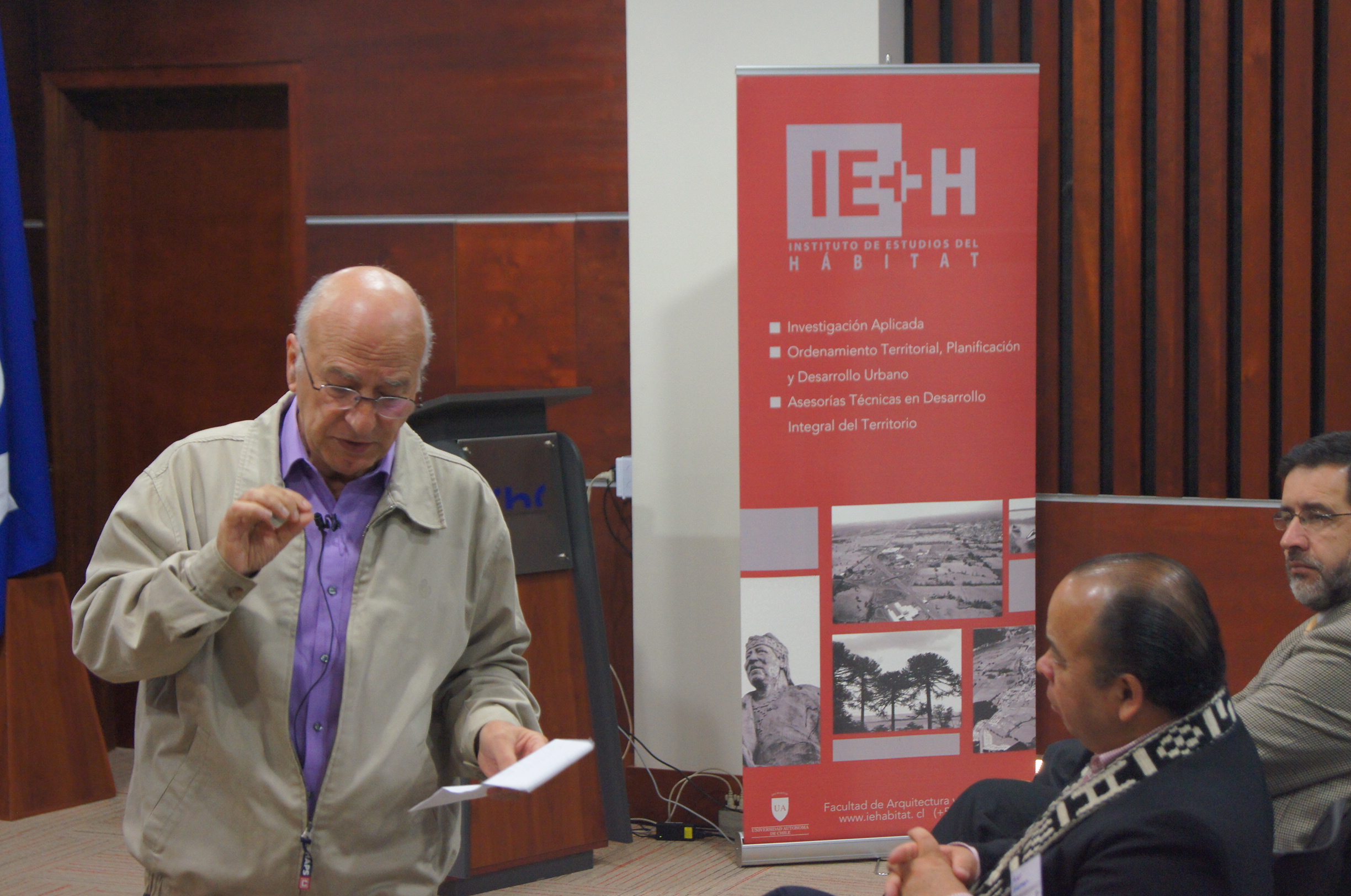 La importancia de las personas en los procesos de planificación fue la temática del seminario “Lidera el desarrollo de tu espacio”, actividad que se llevó a cabo hoy en el auditórium de la CChC y que fue organizado por el Instituto de Estudios del Hábitat, en el marco del proyecto Innova CORFO denominado “Modelo de Autogestión para el desarrollo integral de comunidades mapuche en la comuna de Freire, Región de La Araucanía”.