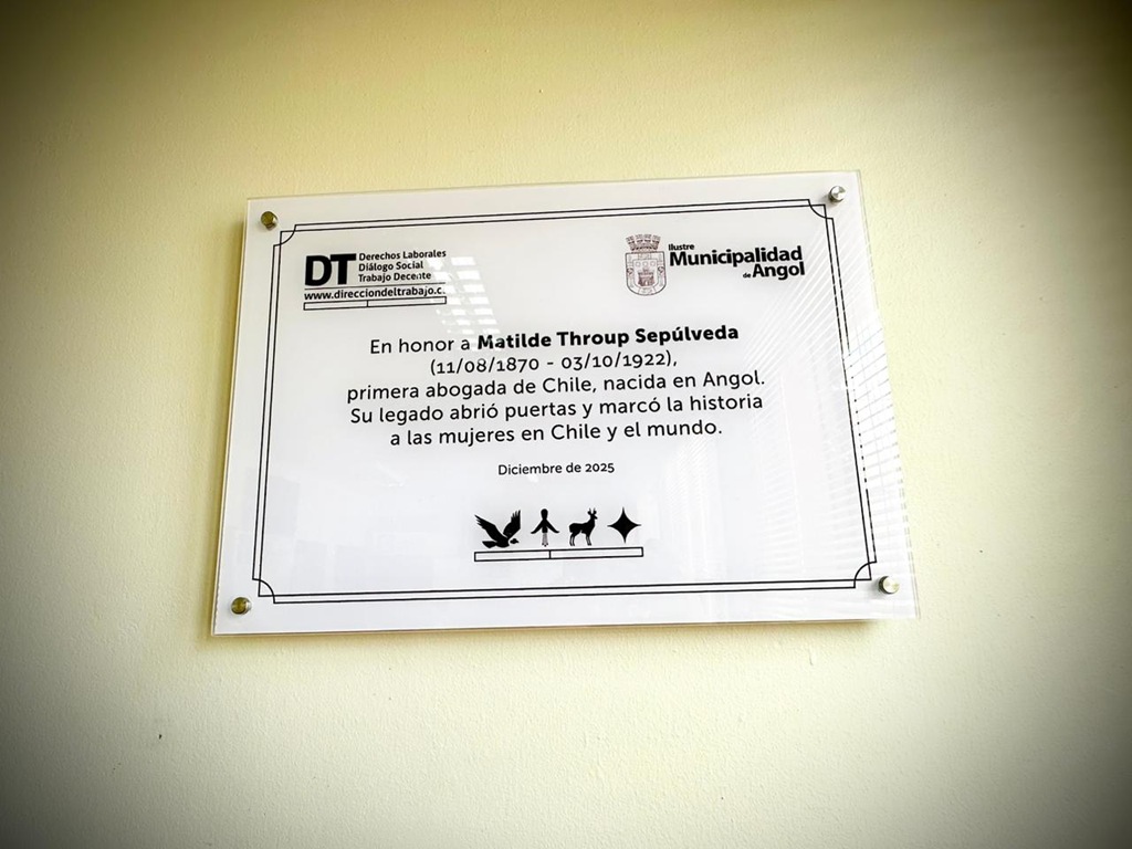 En una emotiva ceremonia, la Dirección Regional del Trabajo, junto al Consejo Tripartito de Usuarios y la Municipalidad de Angol, realizaron un homenaje póstumo a Matilde Throup, destacada hija de la comuna y primera mujer en obtener el título de abogada en Chile, transformándose en una figura fundamental para el avance de las mujeres en el ejercicio profesional y en la lucha por la igualdad de derechos.