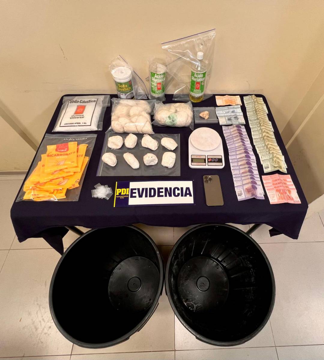 En el procedimiento policial se incautaron 3.581,99 gramos de cocaína base, dinero en efectivo, equipos celulares de alta gama, envases y envoltorios de soda cáustica, ácido muriático y bicarbonato de sodio en polvo, contenedores de basura en el que procedían a mezclar estos insumos para abultar la droga.