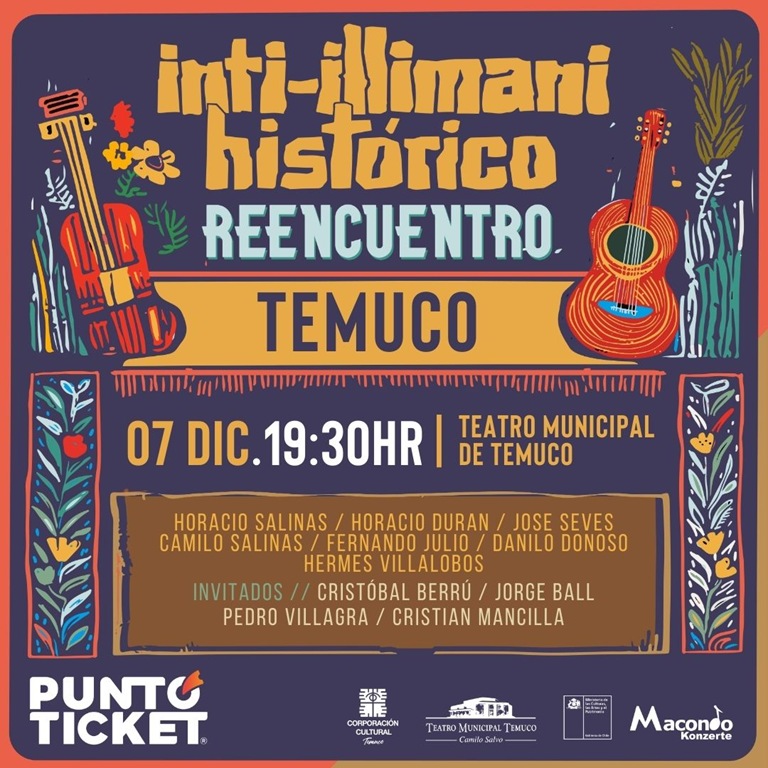 Este domingo 7 de diciembre, a las 19:30 horas, el Teatro Municipal de Temuco “Camilo Salvo” recibirá a Inti-Illimani Histórico con su espectáculo “Reencuentro”, un concierto que invita a recorrer la memoria sonora y la trayectoria de una de las agrupaciones más emblemáticas de la música chilena. Las entradas ya se encuentran disponibles a través del sistema PuntoTicket.