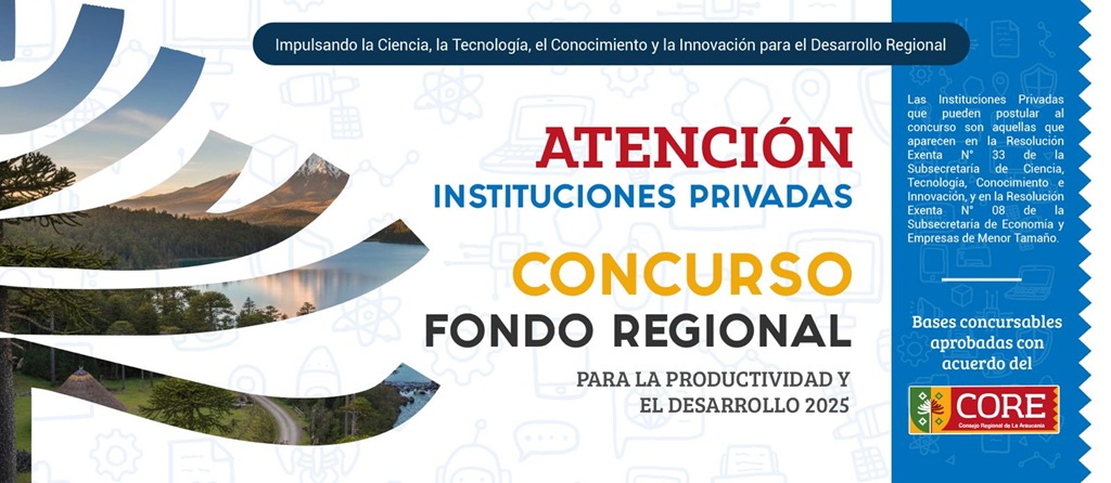 El período de postulación al Fondo Regional para la Productividad y el Desarrollo (FRPD) estará abierto desde hoy y hasta el 15 de enero de 2026, plazo en que las instituciones privadas podrán presentar sus iniciativas para impulsar el desarrollo productivo e innovador de La Araucanía. Las bases del concurso y el calendario completo de postulación están disponibles para consulta y descarga en gorearaucania.cl.