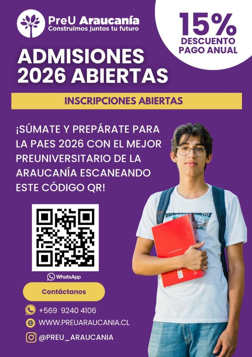 Las inscripciones para el proceso de Admisión 2026 de PreU Araucanía ya se encuentran abiertas y la información completa está disponible en www.preuaraucania.cl.