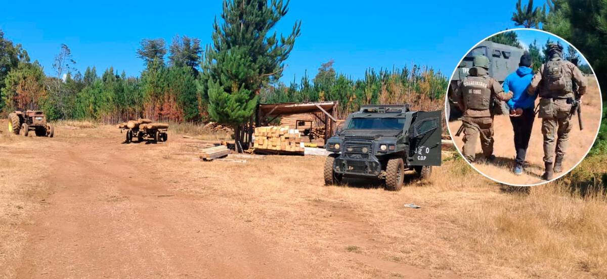 El procedimiento se registró en un predio forestal ubicado en la ruta R-35. Una denuncia en el Retén Curaco activó de inmediato la labor especializada de Carabineros COP, quienes se trasladaron al lugar con vehículos blindados adoptando en flagrancia el procedimiento policial.