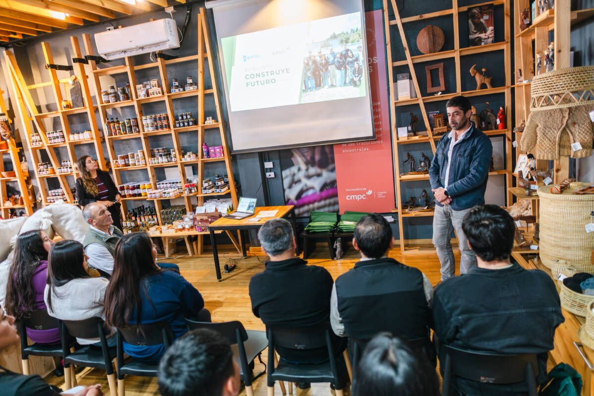 En la tienda Primeros Pueblos de la ciudad de Temuco se realizó la jornada de bienvenida del programa Construye Futuro, iniciativa de CMPC y Fundación Portas, que este año recibió a 14 nuevos estudiantes provenientes de Tirúa, Lumaco, Victoria, Cañete y Collipulli.
