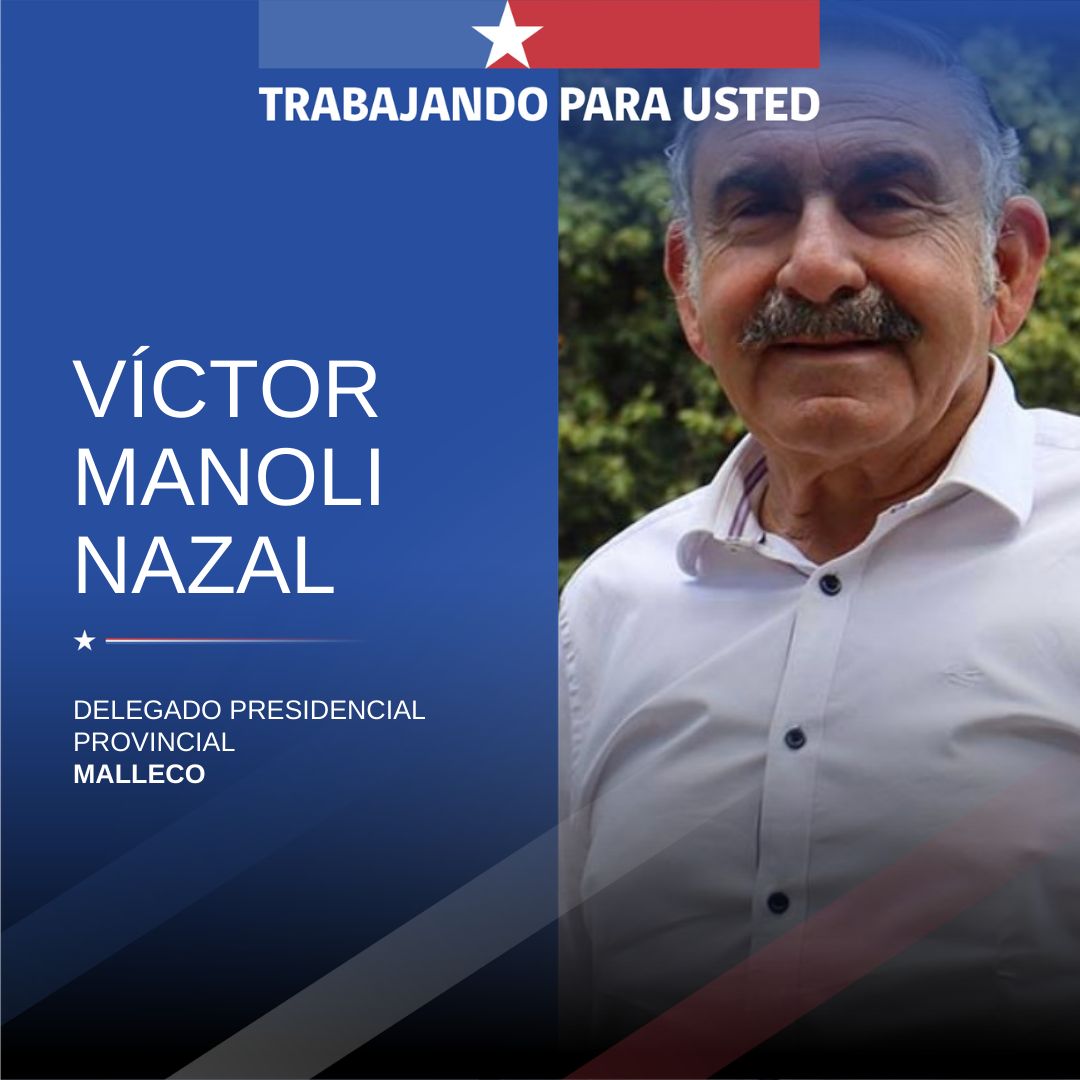 El Gobierno de Chile informó la designación de Víctor Manoli Nazal como nuevo delegado presidencial provincial de Malleco, en la Región de La Araucanía, decisión adoptada por el Presidente de la República, José Antonio Kast.