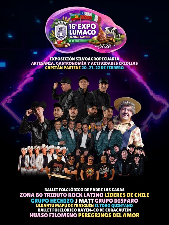 “Año a año la Expo Lumaco se ha convertido en un evento importante para la provincia de Malleco y para La Araucanía y este 2026 seguimos sumando sorpresas, porque estaremos con los stands de gastronomía, artesanías, competencias para quienes nos visiten y grupos artísticos de primer nivel, por lo cual están todos invitados a visitarla y además es con entrada liberado por lo cual es un panorama familiar imperdible”, comentó la autoridad comunal.