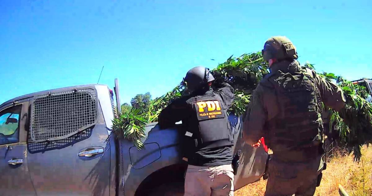 Un despliegue conjunto entre PDI, Carabineros COP y Ejército permitió decomisar 360 plantas de Cannabis Sativa y recuperar un vehículo con encargo por robo del año 2024, en una operación coordinada por la Fiscalía Local de Collipulli en la comuna de Ercilla, considerada uno de los sectores más complejos de la provincia de Malleco.
