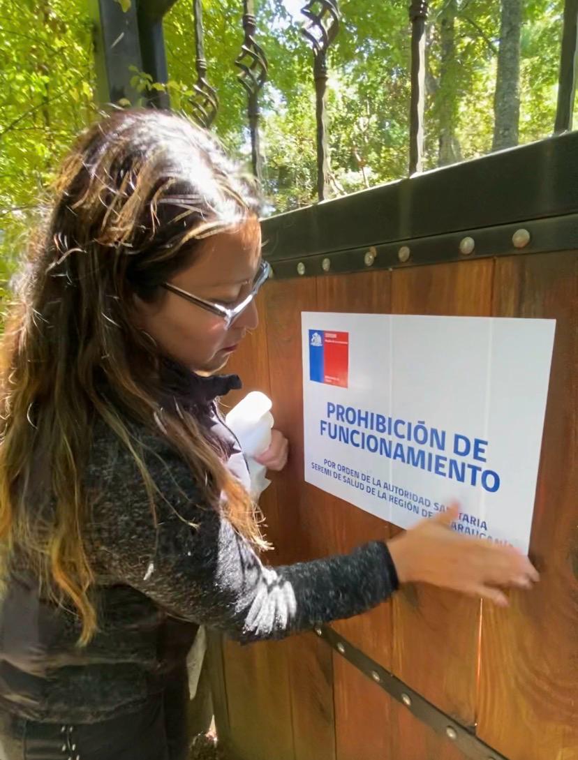 La inspección fue encabezada por Maritza Flandes, fiscalizadora de la Seremi de Salud de La Araucanía, junto a la fiscal subrogante de Pucón, Melitina Sanhueza.