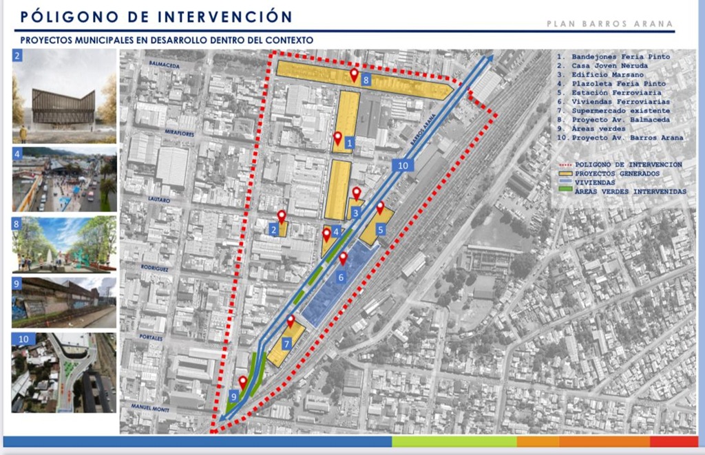 Entre las intervenciones más relevantes se encuentra el mejoramiento de las áreas verdes ubicadas frente al supermercado Cugat, en la intersección de Barros Arana con Portales; la recuperación de la bajada de Portales; y el espacio público frente al supermercado Lider Vecino, en la intersección de Barros Arana con David Perry, además, de toda la demarcación vial alrededor de los colegios. Estos lugares, que antes eran focos de incivilidades, hoy presentan una imagen renovada, más limpia, segura y acogedora.