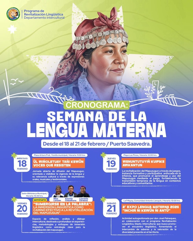 En el marco del Día Internacional de la Lengua Materna, diversos territorios del sur de Chile —como Saavedra, Temuco y San Juan de la Costa— desarrollan una nutrida agenda de actividades orientadas a la revitalización del mapuzugun y del tse süngun williche, promoviendo su transmisión comunitaria, artística y educativa.