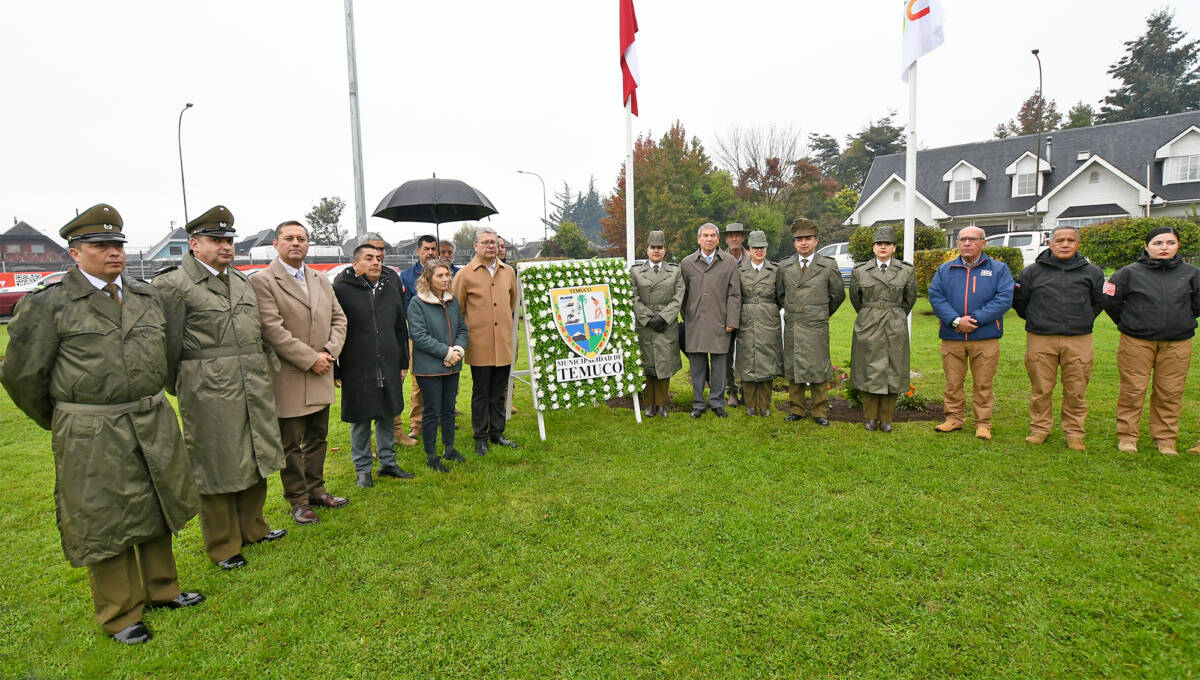 En el marco del 99° aniversario de Carabineros de Chile, la Municipalidad de Temuco realizó un homenaje a los mártires de la institución frente a la 8ª Comisaría, ubicada en el sector Barrio Inglés.